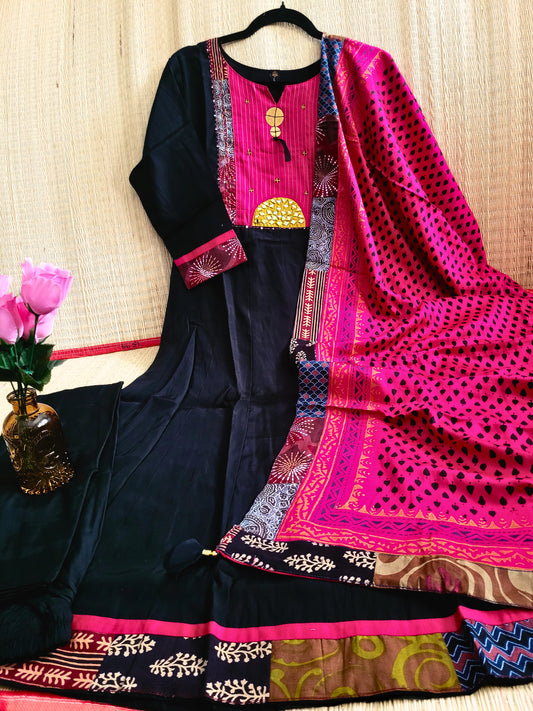 Modal Silk Anarkali Suit With Ajrakh Prints