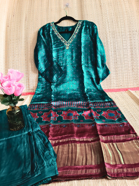 Ajrakh Printed Gaji Silk Kurti SetRegular price $60.00 CADRegular priceUnit price / per-