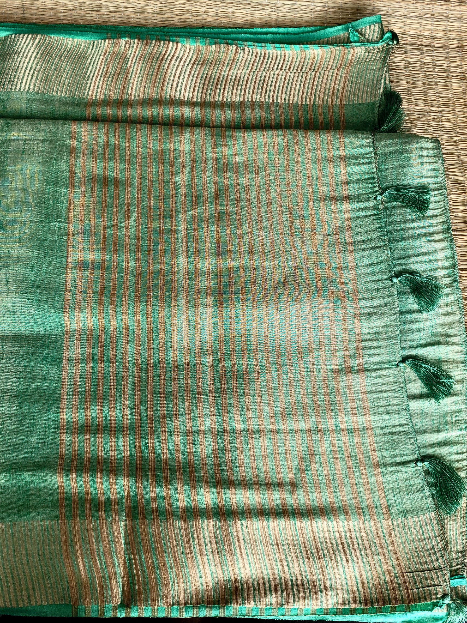 Linen tissue saree with tassels, saree doesn't include blouse piece.