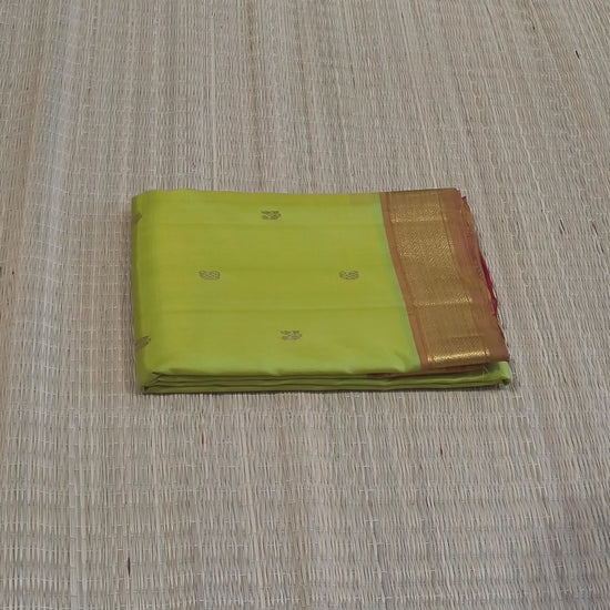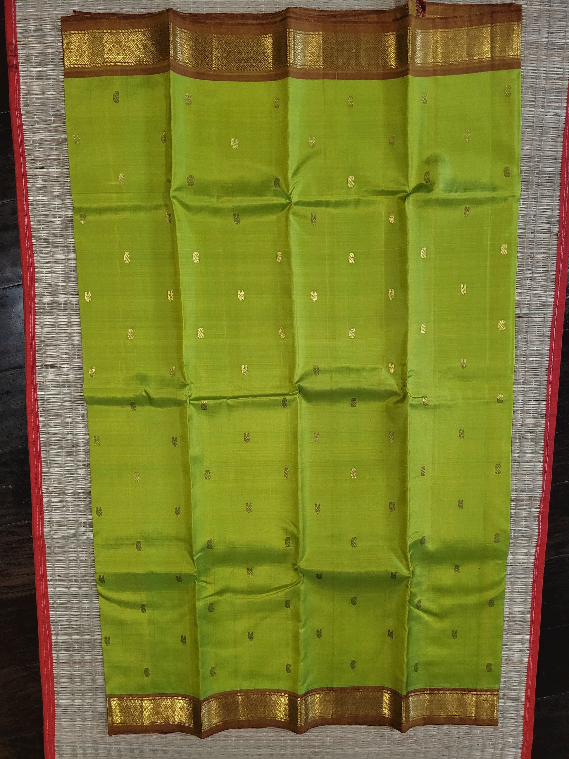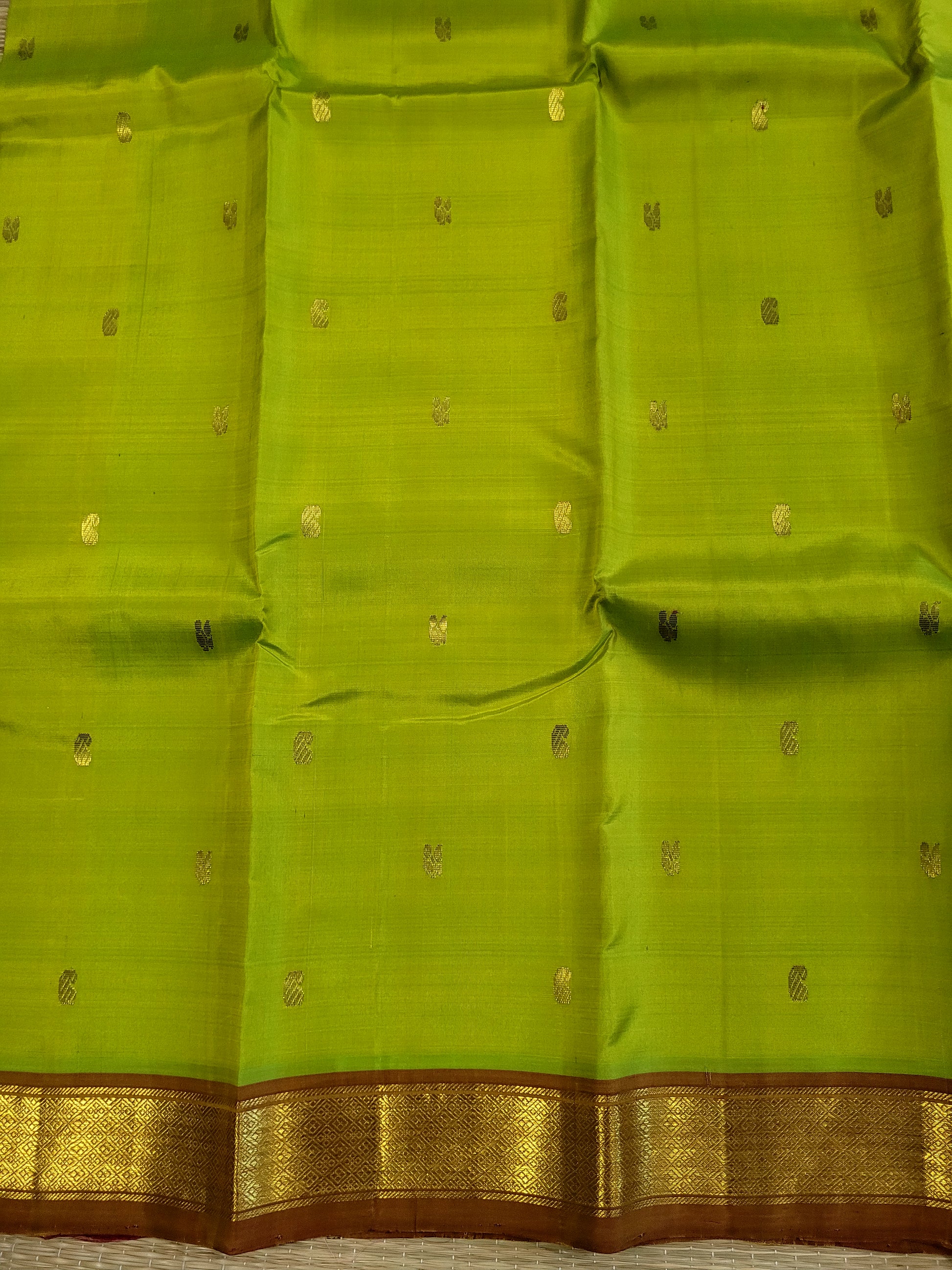 Woven from pure Kanchipuram silk, these sarees grace with medium borders, crafted in double-warp weaves, each adorned with the honor of an authentic Silk Mark Organisation of India
