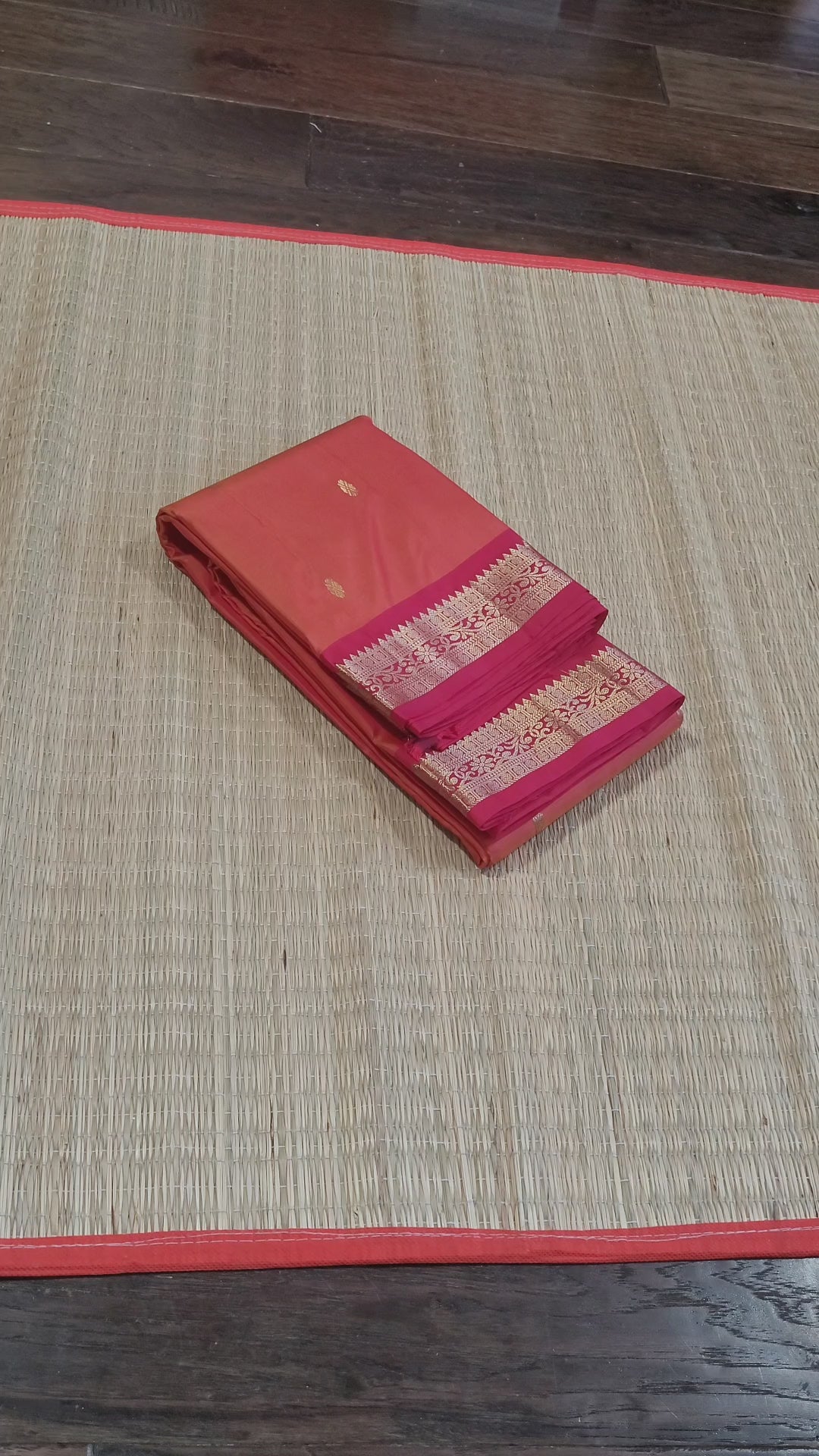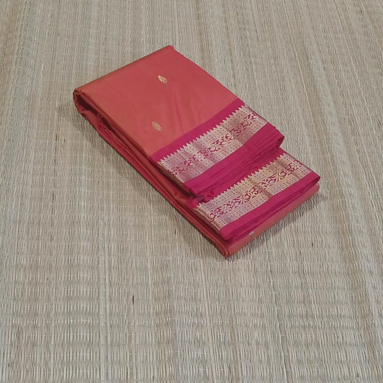 Woven from pure Kanchipuram silk, these sarees grace with medium borders, crafted in double-warp weaves, each adorned with the honor of an authentic Silk Mark Organisation of India
