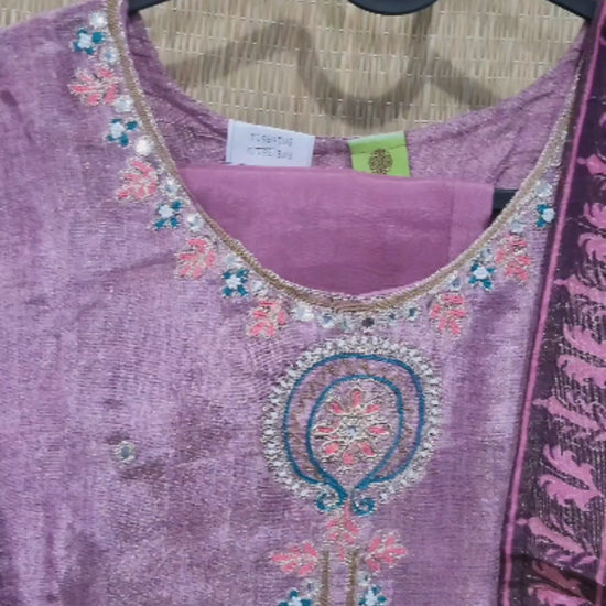 Pure Tissue Shimmer Salwar Suit With Embroidery