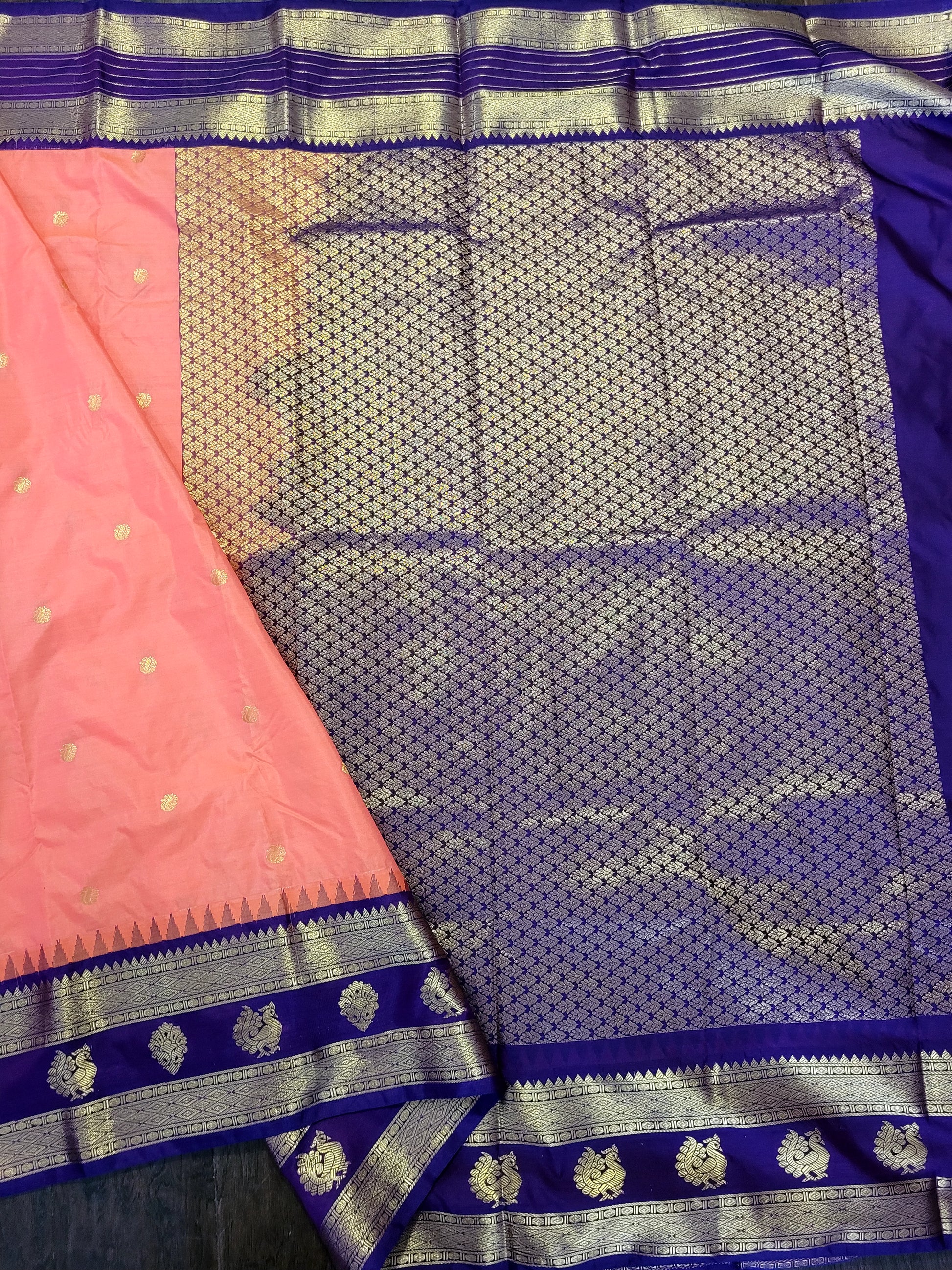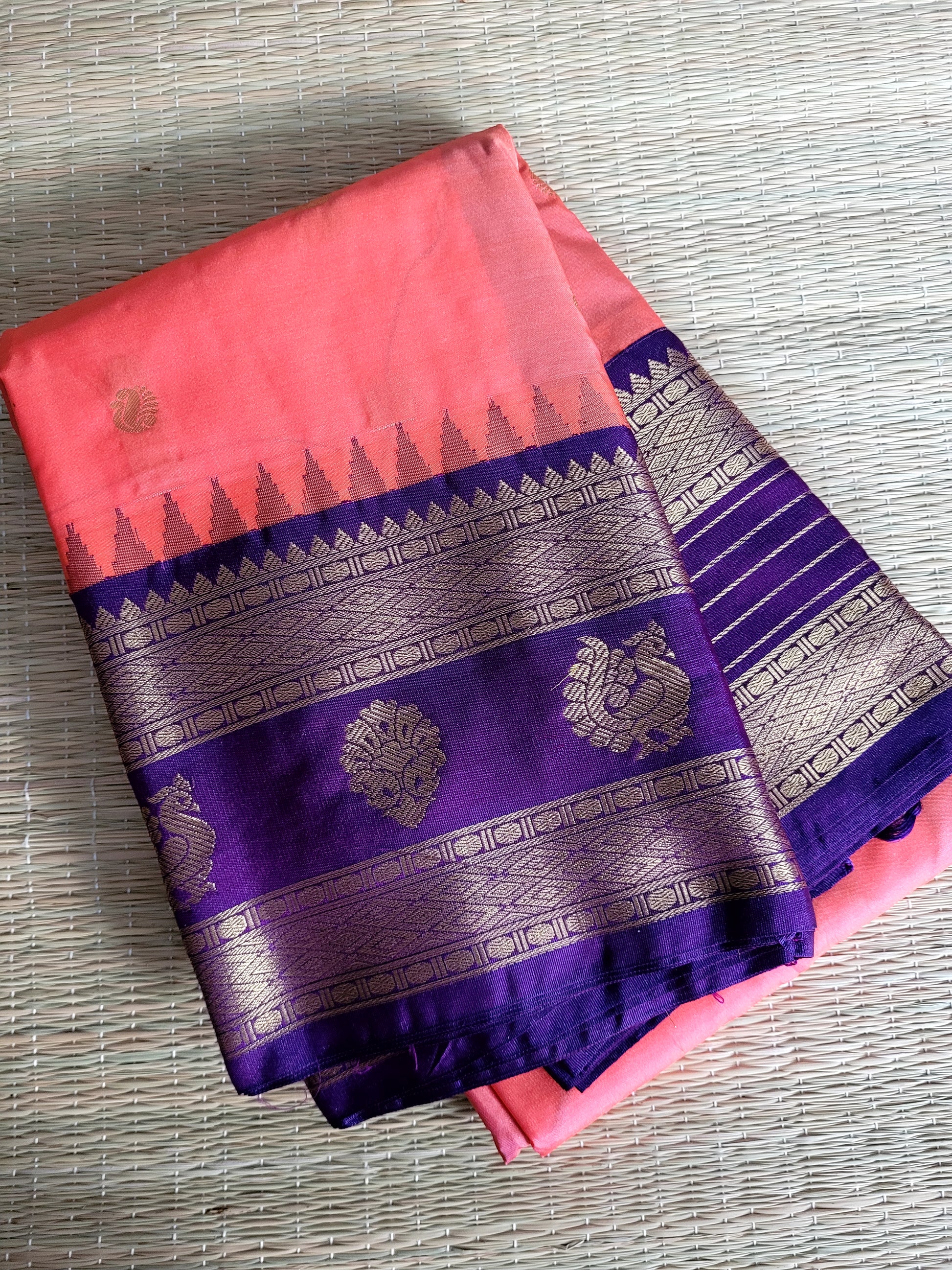 Crafted with the utmost care and expertise, this semi kanchipuram silk saree is luxuriously soft and lightweight, making it effortless to drape.