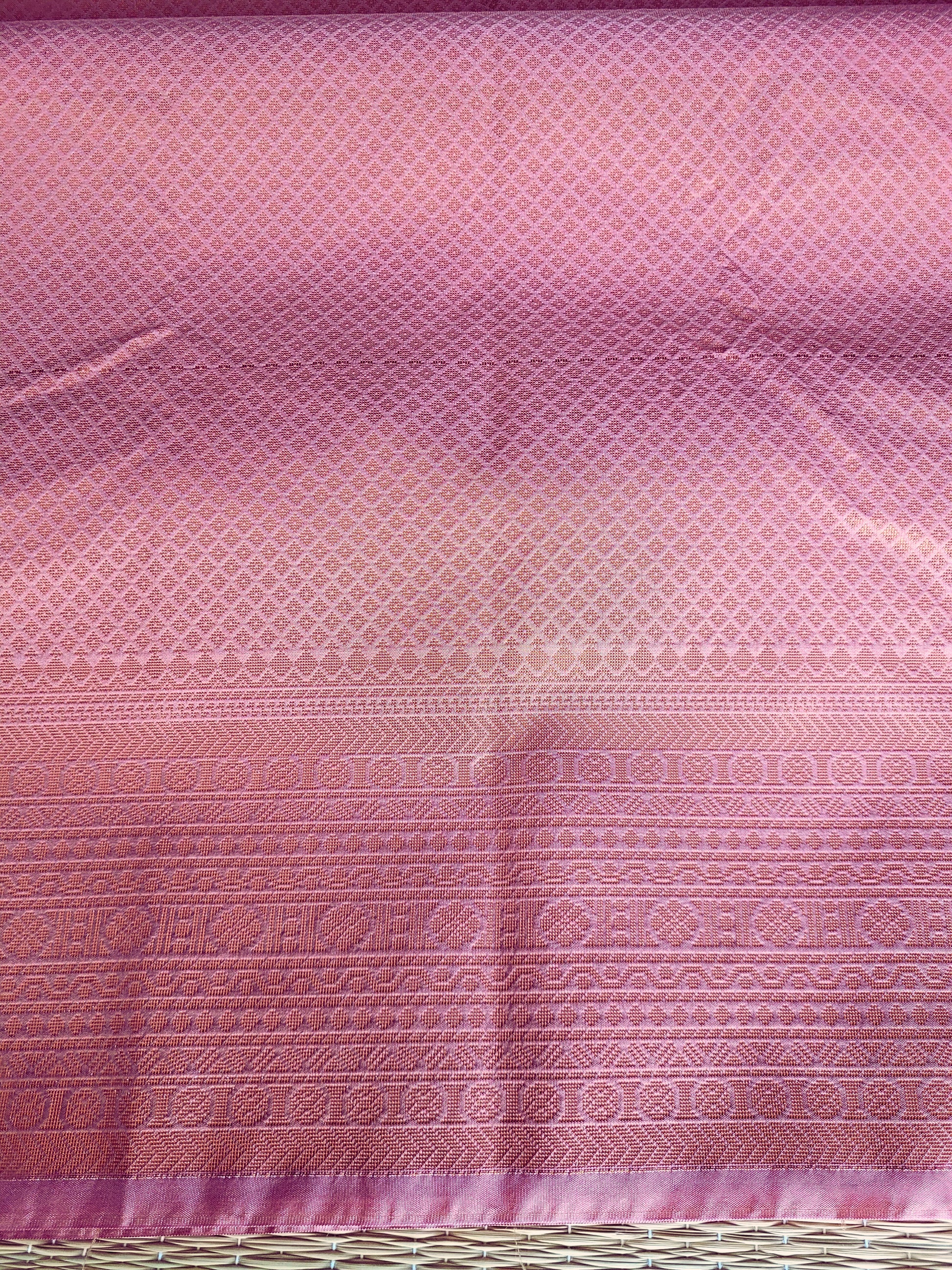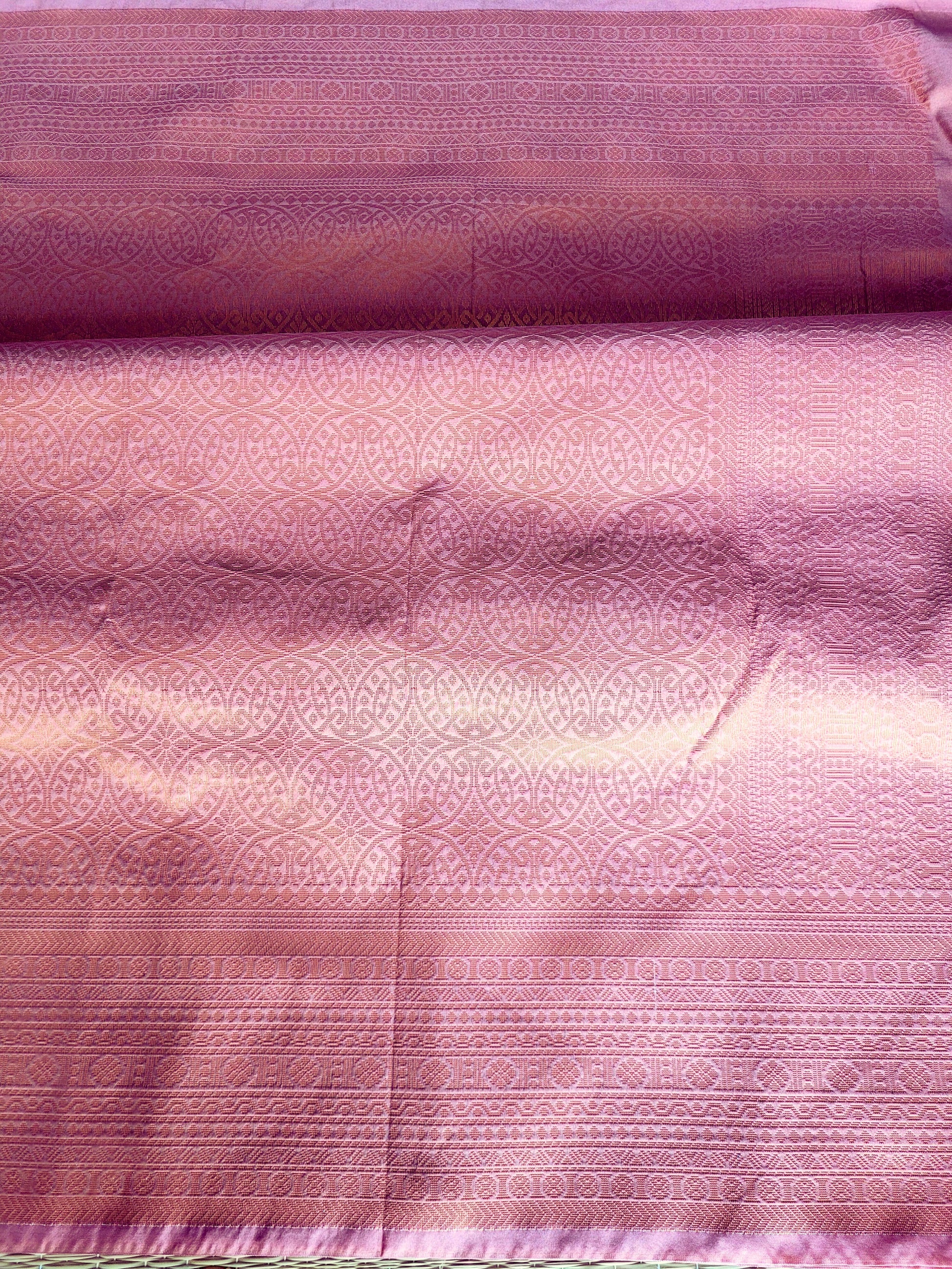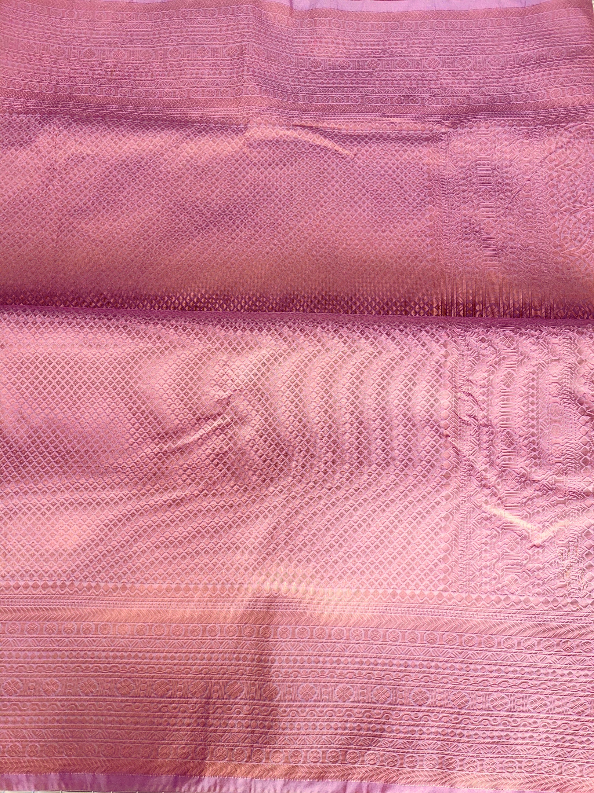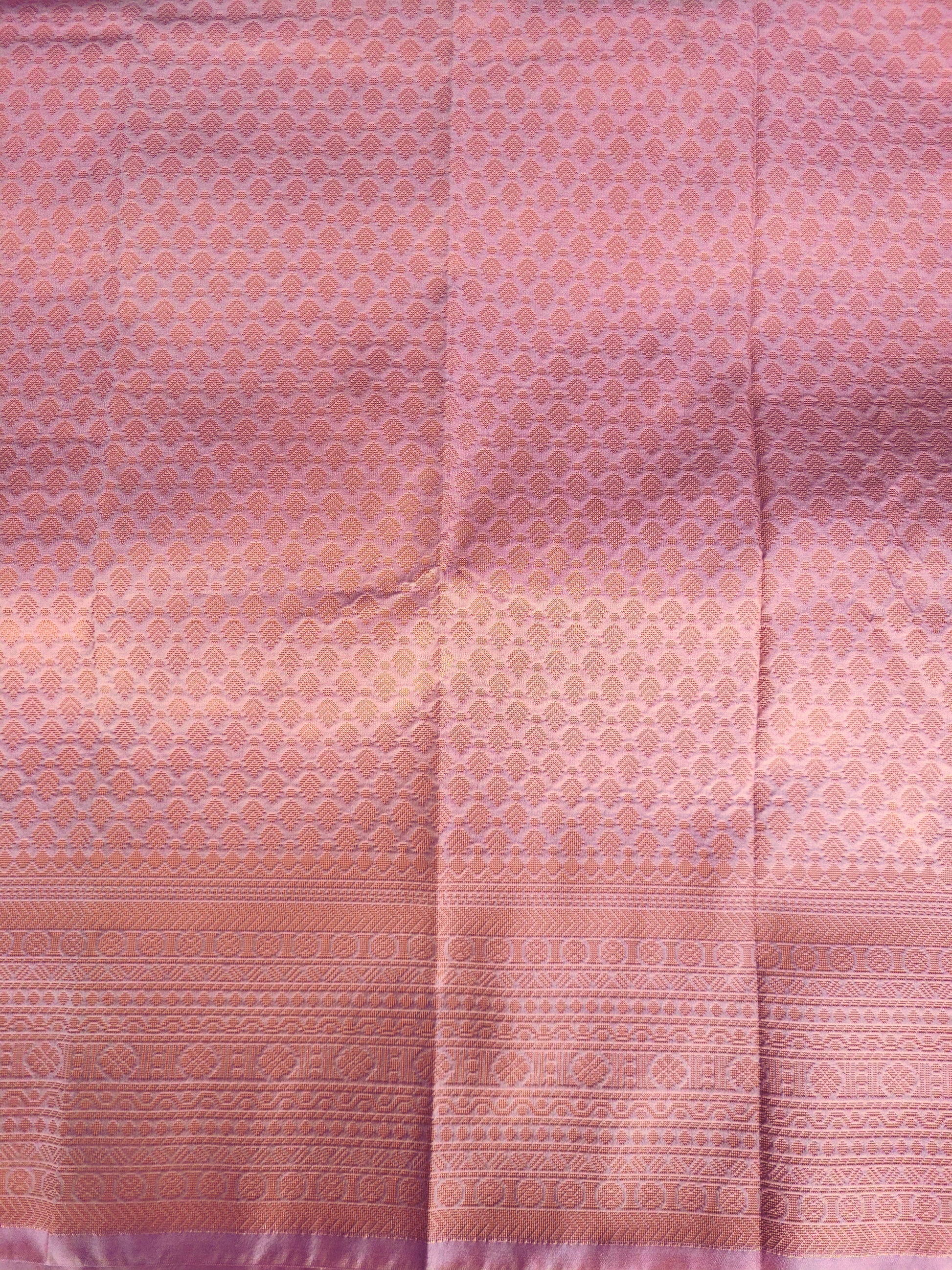 Kanchipuram semi silk saree with copper zari brocade style weaving allover, comes with heavy brocade blouse. very grand festive and occasional wear.
