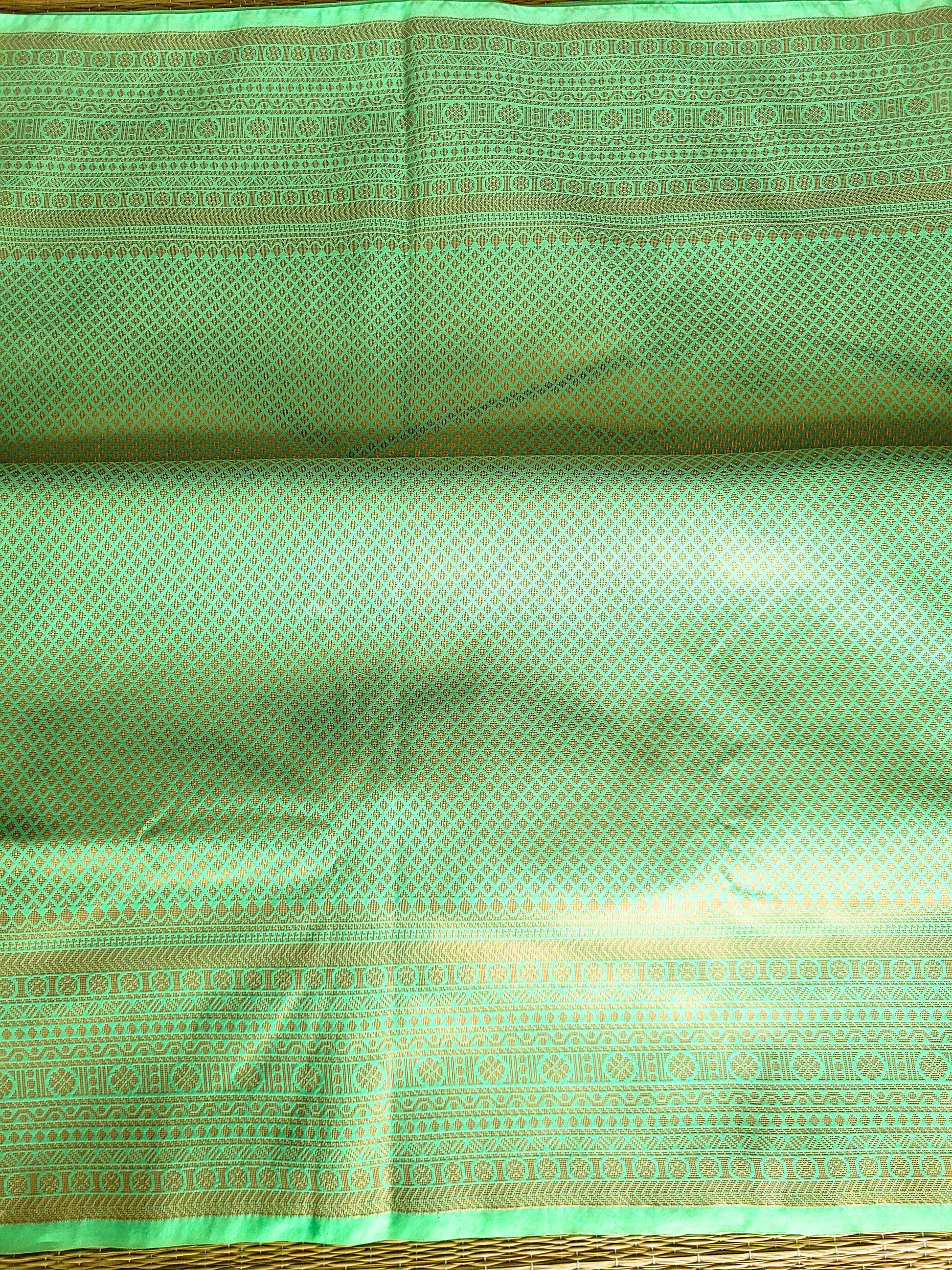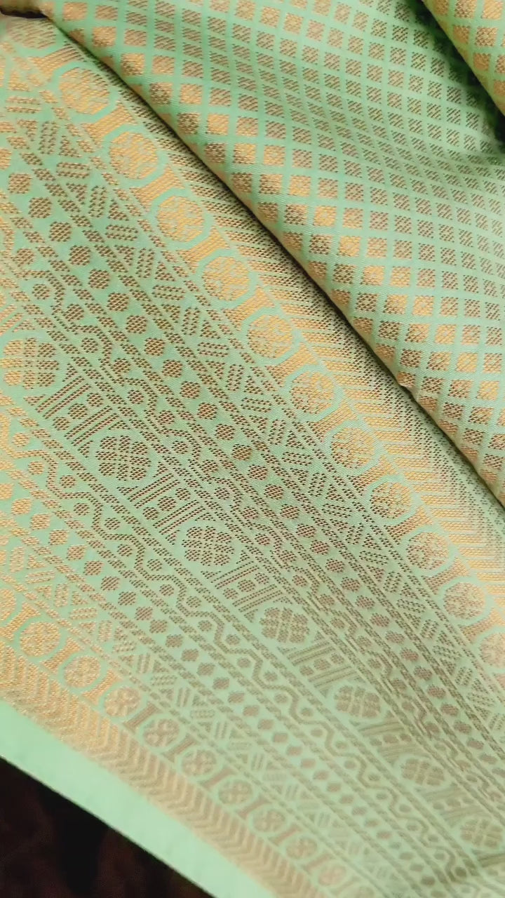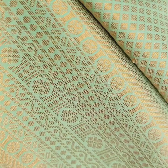 Kanchipuram semi silk saree with copper zari brocade style weaving allover, comes with heavy brocade blouse. very grand festive and occasional wear.