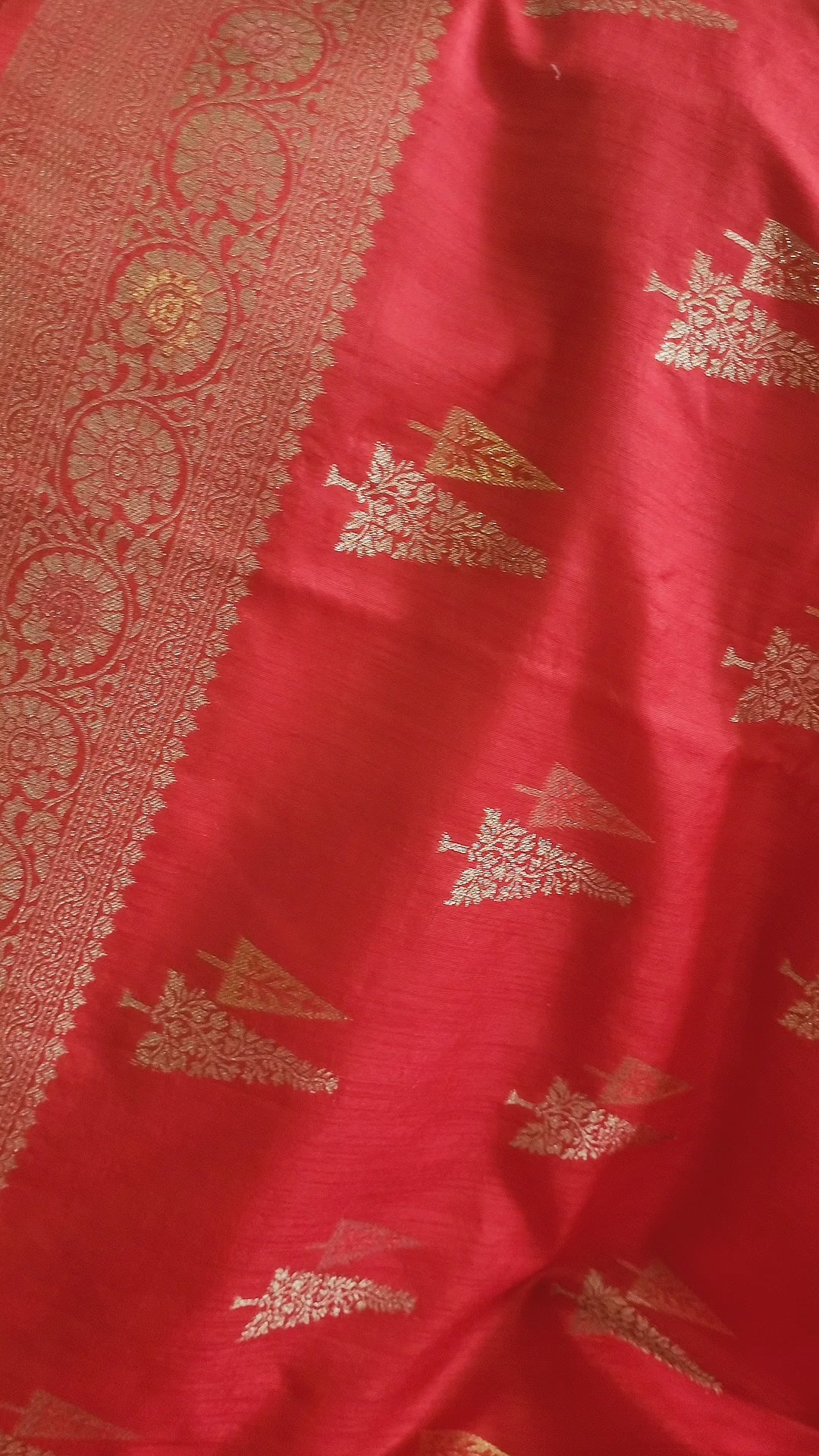 This Semi Raw Silk Banaras Saree features meenakari woven borders on both sides and a grand zari pallu. The entire body of the saree is adorned with zari woven motifs. Additionally, the saree comes with a plain matching blouse piece that also has a border to complement the overall design.